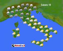 sabato 18: nuova perturbazione al nord ancora neve sulle Alpi oltre i 1000m, nuvolaglia al centro ma senza fenomeni, piu sole e grande mitezza al sud.