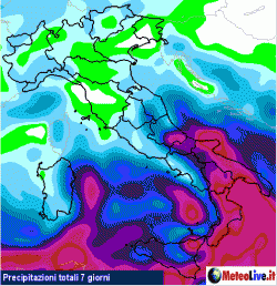 Rapida perturbazione di passaggio nel fine settimana, con qualche spruzzata di neve sabato al settentrione, seguita da forte maltempo al sud, soprattutto domenica. La prima settimana di dicembre esordirà poi con ulteriore instabilità al centro-sud e sulla Sardegna, poi generale miglioramento, con nebbie in val Padana, in attesa di un nuovo possibile peggioramento in vista per le festività dell'Immacolata.