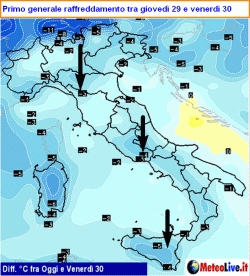 VENERDI 30 si approssima il secondo impulso perturbato con la variabilità che nel corso della giornata sarà incalzata da una nuova perturbazione in arrivo al settentrione, dove apporterà una ripresa delle precipitazioni. Calano ulteriormente le quote neve sulle Alpi. Si spegne lo Scirocco al centro e al sud, dove le temperature rientrano in media.