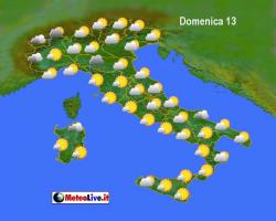 domenica 13 ottobre: ancora passaggi nuvolosi tra nord e centro, locali rovesci tra zone interne del centro e nord-est ma con tendenza a miglioramento, soleggiato e caldo al sud con punte di 30°C.