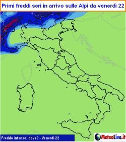 VENERDI 22 nuovo intenso peggioramento al nord e su parte del centro, con piogge diffuse. Possibilità di nevicate sulle Alpi con limite in ribasso strada facendo. Più aperto al sud dove, tra l’altro, il clima sarà ancora abbastanza mite.