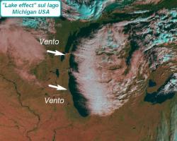 "Effetto lago": non è l’ultima diavoleria inventata da qualche buontempone in vena di euforia meteo, ma di un vero e proprio fenomeno meteorologico, anche spettacolare, che avviene al confine tra Canada e Stati Uniti, là dove si trovano i Grandi Laghi. Il meccanismo è un po’ quello che ritroviamo in piccolo anche sulle nostre regioni adriatiche quando in pieno inverno irrompono improvvisi venti gelidi di Bora.