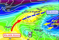 L’ulteriore evoluzione di questa struttura, dalla vita media di circa una settimana, può portare ad una ulteriore spinta verso occidente della massa d’aria fredda continentale, con risposta dinamica lungo l’asse di Woejkoff, tale da collegare in presa diretta l’alta pressione atlantica con quella russo-siberiana.