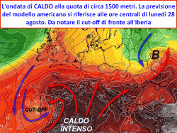 Il quadro termico sarà oltremodo influenzato dalla presenza come sempre massiccia, delle masse d’aria molto calde di origine subtropicale africana. Queste ultime saranno richiamate sul bacino centrale del Mediterraneo dallo sprofondamento di una goccia d’aria fresca in quota a cavallo tra la Penisola Iberica, il Marocco e l’oceano Atlantico, laddove è prevista insistervi per diversi giorni.