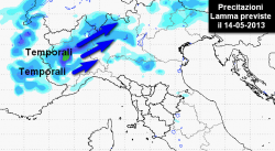 Occorre sin da subito rimarcare che si tratteranno di precipitazioni localizzate, provocate dalla formazione di nubi a sviluppo verticale in sede prefrontale. Le precipitazioni provocate dal fronte perturbato interesseranno le nostre regioni settentrionali solo a partire dal pomeriggio di domani, mercoledì 15 maggio, presentandosi a carattere diffuso.