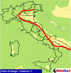 La mappa del disagio fisico, comunque lieve, è ben rappresentata dalla mappa in figura che ritrae la situazione di domenica, Da lunedì le cose andranno leggermente meglio.