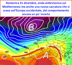 Sotto Capodanno verremo a trovarci sul lato ascendente di una nuova figura depressionaria prevista interessarci nei primissimi giorni del nuovo anno: le temperature segneranno una generale ripresa e risulteranno miti soprattutto in quota e sui versanti tirrenici, laddove però ritrovermo già della nuvolosità che potrebbe risultare particolarmente densa su Liguria, Toscana e Lazio. Reggerà il tempo sul resto dl Paese ma vi sarà un po’ di freddo umido nelle conche e sulla Valpadana. I venti saranno in rinforzo dai quadranti meridionali.