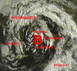 Più a nord è invece presente la ritornante da nord-est, che sta dando piogge a carattere più continuo su alcune zone del nord.