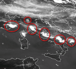 L'instabilità dell'aria si manifesta in queste ore, specie nelle zone interne e sull'Italia centrale. I fenomeni si attenueranno in serata.