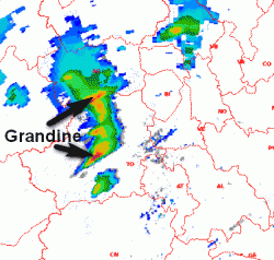 Gli echi del radar evidenziano nuclei a fondoscala. Al loro interno sono presenti grandinate e piogge molto intense, accompagnate da raffiche di vento irregolari.