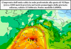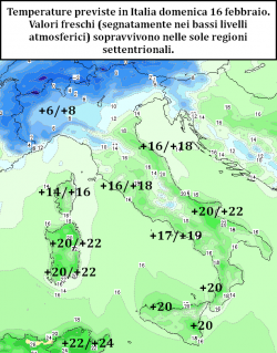 Dove potranno essere raggiunte o superate, temperature di +20°C nella giornata di domenica 16 febbraio?