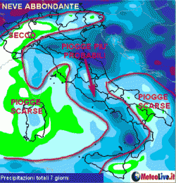 Ecco le precipitazioni ( piovose o nevose) attese per i prossimi sette giorni in Italia.