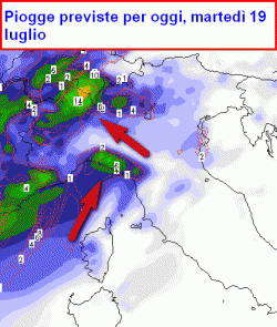 Come già ampiamente previsto da diversi giorni, una perturbazione atlantica atraverserà il nord Italia nella giornata di martedì, dispensando acquazzoni e temporali sparsi e interessando in parte anche la Toscana, specie la parte più a nord.