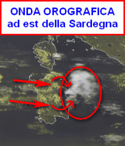 Effetto trampolino delle correnti: onda orografica ad est della Sardegna