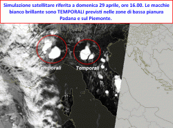 Questi temporali prenderebbero vita nelle ore pomeridiane dapprima sul Piemonte e poi sulla bassa Lombardia e l’Emilia Romagna. Su questi ultimi due settori, nel suo sviluppo la convezione sarebbe agevolata da un fronte d’aria secca (dry line) previsto prendere vigore dalle aree di bassa pianura per muoversi successivamente verso nord.