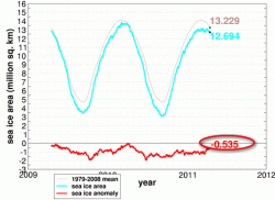 In negativo anche il paragone con le misurazioni satellitari effettuate esattamente un anno fa, ovvero il 20 aprile del 2010, allorquando la superficie della banchisa faceva registrare circa 13 milioni e 200 mila chilometri quadrati contro i 12 milioni e 700 mila attuali.