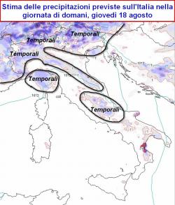 L’anticiclone abbandona la scena atmosferica del Mediterraneo, concedendosi una "vacanza" temporanea nelle lande nord europee; l’area centrale del Mediterraneo diviene a questo punto sede di infiltrazioni d’aria più fresca ed instabile che tra oggi e domani, giovedì 18 agosto, darà del filo da torcere su diverse delle nostre regioni italiane. Mancando l’azione di un sistema frontale organizzato, i fenomeni d’instabilità avranno una distribuzione irregolare lungo il nostro territorio, privilegiando dunque le aree interne e montuose, laddove la presenza dei rilievi, potrà aiutare la risalita forzata dell’aria caldo-umida dai bassi livelli dell’atmosfera verso le alte quote.