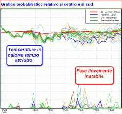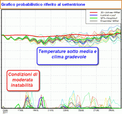 Temperature a tratti anche lievemente inferiori alla norma con qualche temporanea fase instabile.
