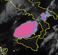 E’ sbocciato come se si trattasse di un fiore, ma al suo interno i fenomeni non hanno nulla di bello e gentile. Stiamo parlando del cluster temporalesco immortalato in queste ore dal satellite nel braccio di mare tra la Sicilia e la Calabria.
