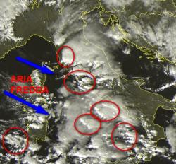 Lo scivolamento di correnti fredde ed instabili da nord-ovest sul mare ancora caldo sta determinando temporali e grandinate su molte zone del centro-sud, segnatamente sulla Toscana.