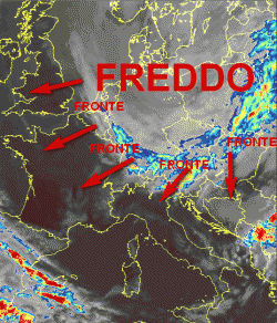 Il fronte di irruzione fredda si sta addossando in queste ore all'arco alpino. Tra mercoledì e giovedì darà effetti anche sulle regioni centro-settentrionali.
