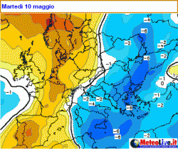 E’ proprio lungo il bordo orientale di quest’ultima che un nucleo fresco particolarmente attivo si porterà sul nostro Paese nella giornata di lunedì e martedì arrecando, come possiamo vedere nell’immagine allegata, un inizio di settimana piuttosto fresco e anche ventilato.