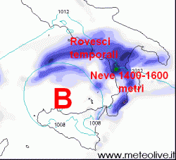 Sopra i 1400-1600 metri arriveranno anche abbondanti nevicate (Sila, Aspromonte e Pollino).