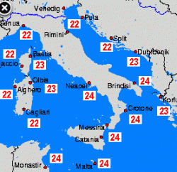 Ecco le temperature attuali degli specchi d’acqua che circondano l’Italia.