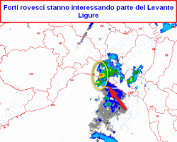 Dopo le piogge intense di ieri che hanno scaricato fino a 120mm nell’area genovese, questa mattina rovesci intensi stanno interessando il Tigullio. Nell’entroterra gli accumuli sono già sui 30-40mm dalla mezzanotte e c’è il rischio di nuove piogge nelle prossime ore. Il radar di questa mattina mostra un groppo piovoso in risalita da sud est che punta la costa genovese. A seguire, forti e umide correnti sciroccali ( freccia rossa).