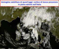 quest’oggi da bella mostra di sè, con un vistoso "ricciolo" di nubi che si avvolge attorno al minimo di pressione in quota.
