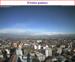 Dalle Alpi al Vesuvio: il tempo cambia tre volte. Si parte dallo stau che si registra lungo il versante nordalpino che trabocca anche sui nostri versanti. Si vede l’abbondante nevicata in atto a Leutasch, si scende più a sud ed ecco il muro del foehn che si scorge in lontananza da una Brianza ormai presa dal favonio e con temperature che schizzano anche oltre i 10°C.