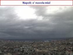 Si scende e si trova invece un richiamo umido ed anche un po’ instabile a ridosso della Campania, con Napoli che spicca con il suo cielo plumbeo e minaccioso e il Vesuvio che manco si vede.