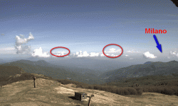 Non mente il radar, ma non mente nemmeno l’occhio di una web cam posta sulla sommità dell’Appennino Ligure e rivolta verso nord. Siamo ai 1785 metri del Monte Bue, spartiacque tra Appennino Ligure e Piacentino. Vi consigliamo di ingrandire l’immagine.