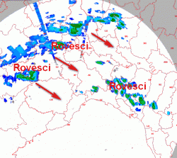Altre celle temporalesche le ritroviamo nel Piacentino ed in prossimità della città di Pavia, dove nelle vicinanze è in atto un temporale grandinigeno.