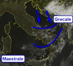 In queste ore alcuni impulsi di aria fresca, ultime conseguenze della saccatura in allontanamento sui Balcani, stanno spazzando via il caldo dalle estreme regioni meridionali, a colpi di vento decisamente forte, di grecale su Ionio e basso Adriatico, maestrale sui mari intorno alla Sicilia.