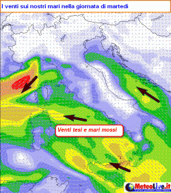 Il vento si dispiegherà soprattutto in mare aperto e proverrà principalmente dai quadranti sciroccali. Solo sul mar Ligure, la miscelazione con l’aria fredda di provenienza padana, farà ruotare il vento dai quadranti nord-orientali.