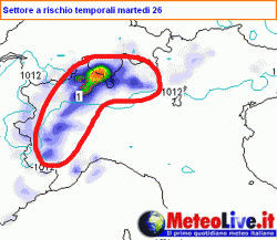 Come vedete dalla mappa allegata le regioni di nord-ovest potranno venirsi a trovare nel mezzo di una linea di contrasto tra masse d’aria diverse. L’esaltazione dei moti verticali da parte delle montagne potrà favorire l’insorgenza di temporali nella seconda parte di martedì tra l’alta Lombardia, la bassa Valle d’Aosta e il Piemonte.