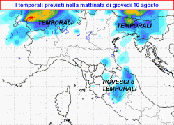 Un coinvolgimento più deciso delle pianure viene prospettato dai modelli soprattutto giovedì 10 agosto sulle pianure di nord-est, protagonista sempre lo Scirocco che potrebbe creare insidiose convergenze con i venti di outflow derivanti dalle celle senescenti lungo la fascia alpina e prealpina. Anche per questa giornata i fenomeni risulterebbero comunque circoscritti alle zone di alta pianura, i temporali saranno "sbattuti" così in alto dalla forte ventilazione meridionale che sarà presente soprattutto nei medi livelli dell’atmosfera (500hpa). Focolai temporaleschi tra il pomeriggio e la serata di giovedì potrebbero infine manifestarsi sulla Toscana, l’Umbria, l’alto Lazio e le Marche ma qui sono necessari ulteriori dettagli a tal riguardo.