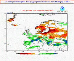 Pur nell’intrinseca inaffidabilità di una previsione stagionale, quest’oggi vogliamo ugualmente citarvi della situazione alquanto inusuale che andrebbe a consumarsi sull’Europa nel mese di giugno; stiamo parlandovi di un pattern decisamente instabile che suggerisce la presenza di vistosi anticicloni posti alle latitudini settentrionali d’Europa, mentre il bacino del Mediterraneo ed i settori meridionali del nostro continente, sarebbero spesso e volentieri interessati da circolazioni d’aria più fresca foriere di tempo incerto, una pluviometria superiore alla norma.