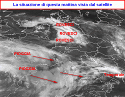 Questa mattina è davvero difficile distinguere i fronti nuvolosi dal satellite. Le nubi arrivano di gran carriera dall’Oceano, pilotate da una forte corrente occidentale che soffia alle quote superiori.