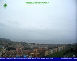 Piove anche nel messinese. Qui siamo a Patti. Tuttavia il cielo si presanta meno minaccioso rispetto alla città di Catania. Merito delle correnti da est che addensano nubi sul lato orientale dell’Etna, dove maggiori sono (e saranno) i fenomeni.