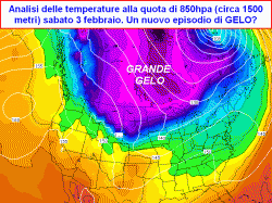 Qui di seguito una cartina di previsione riferita a sabato 3 febbraio, nella quale possiamo identificare una nuova, potente irruzione d’aria gelida ARTICA.