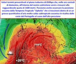 Vi sono diversi elementi che impressionano noi previsori nella struttura del grande anticiclone che nei prossimi giorni verrà alimentato da una massa d’aria molto mite di origine subtropicale oceanica. In un periodo stagionale così avanzato, viene messa fuori gioco l’ingerenza delle masse d’aria africane, la palla al balzo verrà quindi lasciata all’oceano che grazie alla sua inerzia, è in grado di conservare molto più calore sia nelle sue temperature superficiali che nelle masse d’aria che gravano sopra la sua enorme estensione.