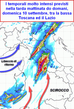 Toscana i temporali più violenti sulla Versilia sono previsti dalla Mezzanotte di oggi sino al Mezzogiorno di domani, domenica 10 settembre.