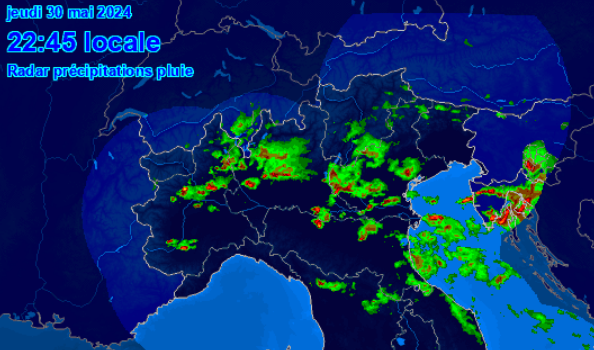 Nel corso della notte è previsto un ulteriore peggioramento su Lombardia, Emilia e poi Veneto e Trentino con altre piogge temporalesche molto intense, in movimento da ovest verso est, localmente a carattere di nubifragio. Notate il nucleo precipitativo molto intenso che stava per colpire Milano alle 23.05: