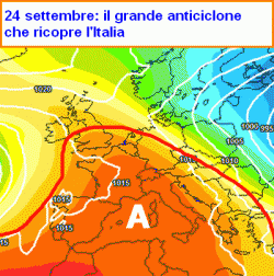 pressione di matrice subtropicale, che garantirà la prosecuzione di generali condizioni soleggiate e molto miti su tutta l’Italia. Le temperature saliranno al di sorpa delle medie e in alcuen località farà addirittura caldo, stante i valori massimi fin oltre i 30°C. Tale status permarrà pressochè invariata sino a mercoledì 25 settembre.