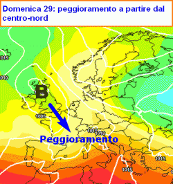 Avvicinandosi al week-end ecco però il colpo di scena: l’alta pressione sarà rovesciata bruscamente da una saccatura nord-atlantica, che ne prenderà il posto sul bacino centro-occidentale del Mediterraneo, innescando un peggioramento che, a partire da domenica, inizierà a interessare diverse regioni d’Italia, in particolare quelle settentrionali, per poi estendersi in parte anche al centro, specie da lunedì 30.