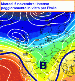 Date un’occhiata all’ultima mappa qui a fianco: si nota il guasto generale, severo, massiccio, che si profila sui cieli europei, con coinvolgimento pressochè completo anche del Mediterraneo e dell’Italia.
