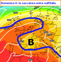 L’Italia risentirà solo parzialmente di questa contingenza anticiclonica, dato che l’asse dell’alta pressione sarà molto stretto e ci porterà al cospetto di aria umida a precedere la saccatura in progressione dall’Atlantico. Quest’ultima verrà spinta verso il Mediterraneo da una pulsazione dell’anticiclone delle Azzorre che domenica 6 sarà all’origine dell’ormai noto peggioramento su tutta l’Italia.