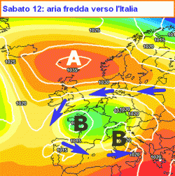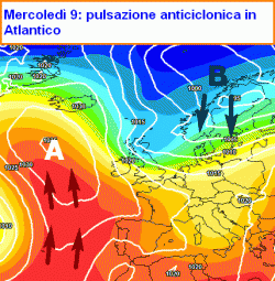 lungo i meridiani atlantici andrà a gonfiare un pallone anticiclonico anomalo nei pressi della regione scandinava, già piuttosto fredda a in questo periodo. L’aria fredda verrà quindi prelevata e incanalata lungo un asse di bassa pressione che giovedì 10 ottobre si dirigerà verso il nord Italia, dove determinerà un nuovo peggioramento del tempo.